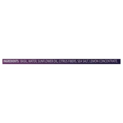 INGREDIENTS: Basil, Water, Canola Oil, Citrus Fibers, Sea Salt, Lemon Concentrate.