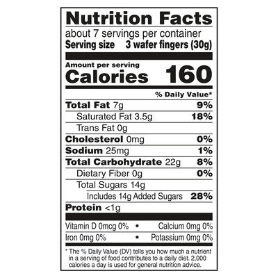 PRODUCT DETAILS: Per 3 Wafer Fingers: 160 calories; 3.5 g sat fat (18% DV); 25 mg sodium (1% DV); 14 g total sugars. Forever gluten free. Certified gluten free. gfco.org. Non-GMO Project verified. nongmoproject.org. They make you feel fancy when you eat them. We're not sure why. Is it the sweet, tanginess of the lemon flavor the delicate wafer crunch? The lovely, light yellow color? It may just remain a mystery. But, do enjoy these gluten free goodies any time you want to feel a little special in your snack time. Always delicious and forever gluten free. glutino.com. how2recycle.info. SmartLabel. Scan for more food information or call 1-800-845-7286. Facebook. Twitter. Instagram. Pinterest. 1-800-845-7286. glutino.com. Made in Israel.