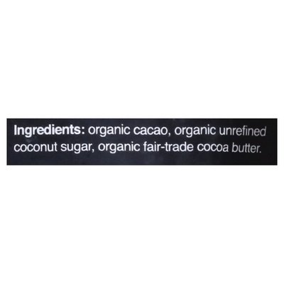 INGREDIENTS: Organic Cacao, Organic Unrefined Coconut Sugar, Organic Fair – Trade Cocoa Butter.