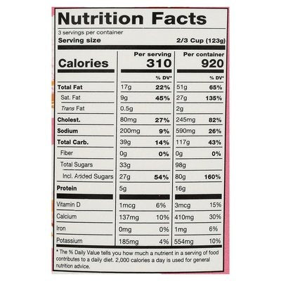 INGREDIENTS: Nonfat Milk, Cream, Raspberry Rose Jelly (Raspberry Puree, Sugar, Water, Cornstarch, Lemon Juice, Natural Flavor), Cane Sugar, Salted Custard (Cream, Sugar, Egg Yolk, Tapioca Syrup, Sea Salt), Pastry [Light Brown Sugar, Cane Sugar, Unbleached Flour (Wheat Flour, Malted Barley Flour), Eggs, Canola Oil, Natural Flavors, Dried Egg Whites, Salt, Nutmeg], Tapioca Syrup, Madagascar Bourbon Vanilla Extract, Natural Flavor, Nutmeg Oil.