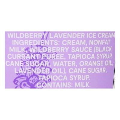 INGREDIENTS: Cream, Nonfat Milk, Wildberry Sauce (Black Currant Puree, Tapioca Syrup, Cane Sugar, Water, Orange Oil, Lavender Oil), Cane Sugar, Tapioca Syrup.