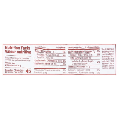 PRODUCT DETAILS: Per Serving: 1 g total fat; 7 g total carb; 2 g added sugars. May contain ingredients with genetic engineering. Great snack! Product of Israel.