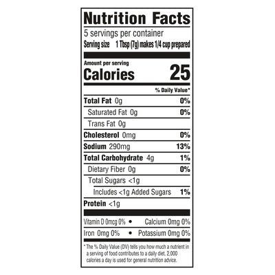 PRODUCT DETAILS: Flavored with other natural flavors. Our Promise: No artificial flavors. Per 1 Tbsp Dry Mix: 25 calories; 0 g sat fat (0% DV); 290 mg sodium (13% DV); less than 1 g total sugars. Contains a bioengineered food ingredient. Questions? Visit learnaboutmyfood.com. Since 1838. Ready to eat in 7 minutes. Our Promise: No added MSG. Except those naturally occurring glutamates. Our Promise: Helping you make flavorful & balanced meals your family will love. Where will your flavored gravy mix take you? learnaboutmyfood.com. how2recycle.info. Scan code with your phone’s camera for recipes and more inspiration. Facebook: Like us (at) facebook/knorr. Questions or comments? Give our kitchen a call! 1-800-457-7082.