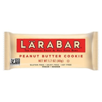 PRODUCT DETAILS: Gluten free. Vegan. Dairy free. Soy free. Non GMO Project verified. nongmoproject.org. The original fruit & nut food bar. Just 3 ingredients. We at Larabar believe that a sound mind, body and spirit are derived from food in its simplest, most natural state. Made from 100% real food, Larabar is a magical harmony of fruits, nuts and spices that will lift your vitality and provide energy with every bite. Simple. Pure. Delicious. Enjoy the energy! - Lara (Creator of Larabar). www.larabar.com. 1-800-543-2147 (Mon-Fri 7:30-5:30 CT). www.larabar.com.