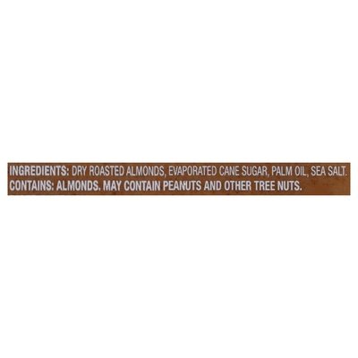 INGREDIENTS: Dry Roasted Almonds, Evaporated Cane Sugar, Palm Oil, Sea Salt.