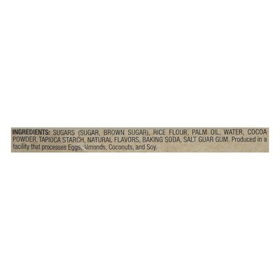 INGREDIENTS: Sugars (Sugar, Brown Sugar), Rice Flour, Palm Oil, Water, Cocoa Powder, Tapioca Starch, Natural Flavors, Baking Soda, Salt Guar Gum.