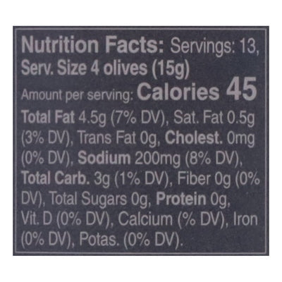 INGREDIENTS: Black Olives, Sea Salt, Olive Oil.
