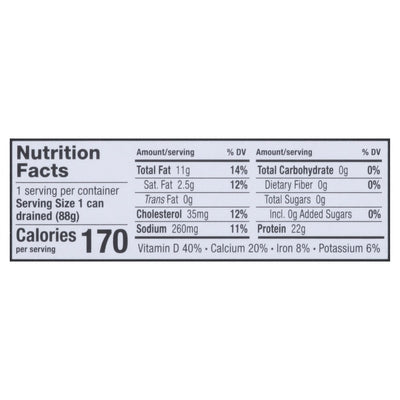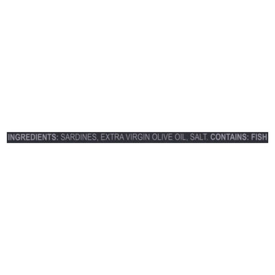 INGREDIENTS: Sardines, Extra Virgin Olive Oil, Salt.