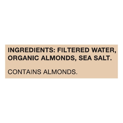 INGREDIENTS: Filtered Water, Organic Almonds, Sea Salt.