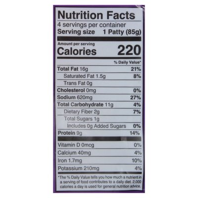 PRODUCT DETAILS: 4 breaded plant-based chicken patties. 9 g of protein per serving. Vegan. No Cholesterol. See nutrition information for total fat and sodium content. Non GMO. Juicy. Crispy. Delicious. Whynot. [at]notco. [hashtag] not chicken. [hashtag] whynot. Please recycle. Product of Canada.