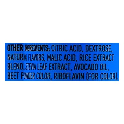 INGREDIENTS: Other Ingredients: Citric Acid, Dextrose, Natural Flavors, Malic Acid, Rice Extract Blend, Stevia Leaf Extract, Avocado Oil, Beet Powder Color, Riboflavin (for Color).