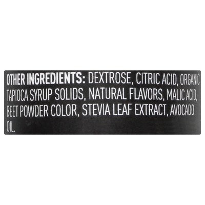 INGREDIENTS: Dextrose, Citric Acid, Organic, Tapioca Syrup Solids, Natural Flavors, Malic Acid, Beet Powder Color, Stevia Leaf Extract, Avocado Oil.