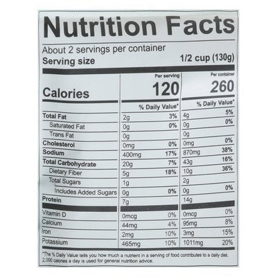 INGREDIENTS: Water, Black Beans (Organic), Onions (Organic), Avocado Oil (Organic), Sea Salt, Garlic (Organic), Spice (Organic).