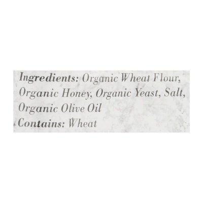 INGREDIENTS: Organic Wheat Flour, Organic Honey, Organic Yeast, Salt, Organic Olive Oil.