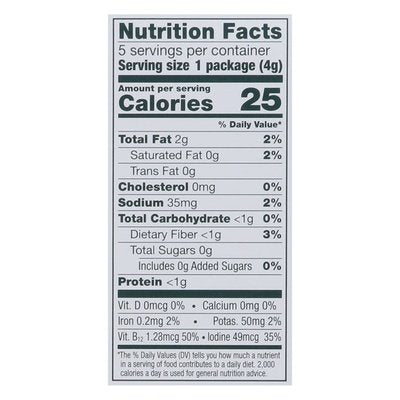 INGREDIENTS: Seaweed (Organic), Avocado Oil (Organic), Sea Salt.