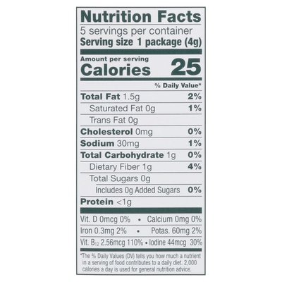 DESCRIPTION: USDA Organic. Certified gluten free. gfco.org. Certified vegan. Vegan.org. Certified Organic: Quality Assurance International. Certified Organic by Quality Assurance International (QAI). Non-GMO Project verified. nongmoproject.org. Portable slim packs. Roasted to light crispy perfection. Powered by one of the world's most nutrient-dense veggies, our seaweed snacks are craveably crafted to deliver an amazing crispy crunch and salty umami flavor that will have you saying gimMe more! Delicious, nutritious, snackable fun! Our Grab & Go packs offer the same deliciously crispy roasted seaweed snacks you love, conveniently wrapped in a portable slim pack that easily fits in your lunchbox, bag, or back pocket! Contains 5 slim packs! Did you know? Gim means seaweed in Korean. gimmesnacks.com. SmartLabel: Scan code to discover the wonders of seaweed! Instagram. Facebook. (at)gimmeseaweed. Sea Turtle Conservancy. Recyclable box. Product of Korea. < Seaweed (Organic), Sunflower Oil (Organic), Sea Salt.