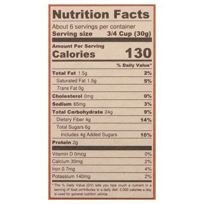 PRODUCT DETAILS: Fair Trade: Cassava. Coconut. Honey. Coconut Sugar. Cinnamon. Coconut Oil. Himalayan Salt. USDA Organic. Certified gluten free. CCOF: California Certified Organic Farmers. Made with on a dedicated gluten-free line. Gluten free. Certified organic by CCOF. Grain free. No refines sugar. Paleo. Glyphosate free. Non-GMO. Non-GMO & more. AIP. Rise & fly. Nutrient rich superfood ingredients with no weird stuff to help with gut health and support your immune system. The birth of my daughter was powerful. I was in awe of my wife's strength, the perfection of my daughter from her first cry, and the gratitude of becoming a dad. I felt a calling to make a difference. I left my big food job to clean up cereal with real food ingredients from the earth and to fight childhood cancer by giving 20% of profit. Together, we can rise & fly to a better food future. Loverbird, rise and fly. Your wings are stronger than you know, there will be highs and there will be lows, keep flying where your heart tells you to go. - Parker & Yukiko. This product is sold by weight not volume. Some setting may occur during shipping. eatlovebird.com. (at)eatlovebird. 20% of profit given to fight childhood cancer. Our Mission: Clean up cereal with real food from earth. Fight childhood cancer by giving 20% of profit. Fair trade.