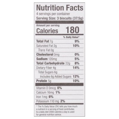 INGREDIENTS: Whole Grain Flour (Organic) (Spelt (Organic), Oat (Organic), Lupine (Organic), Barley (Organic)), Cane Sugar (Organic), Sustainable Palm Oil (Organic), Tahini (Organic) (Sesame), Honey (Organic), Flaxseed Flour (Organic), Cinnamon (Organic), Baking Soda, Sea Salt, Natural Flavoring.