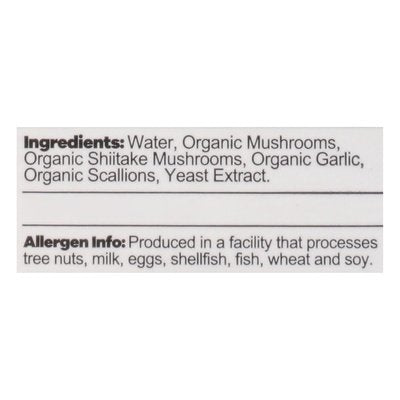 INGREDIENTS: Water, Organic Mushrooms, Organic Shiitake Mushrooms, Organic Garlic, Organic Scallions, Yeast Extract.