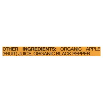 INGREDIENTS: Organic Apple (Fruit Juice, Organic Lemon (Fruit) Juice, Organic Turmeric (Root) Juice, Organic Black Pepper, No H2O Added.