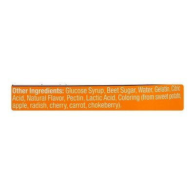 INGREDIENTS: Other Ingredients: Glucose Syrup, Beet Sugar, Water, Gelatin, Citric Acid, Natural Flavor, Pectin, Coloring (from Sweet Potato, Apple, Radish, Cherry, Carrot and Chokeberry Juices), Lactic Acid.