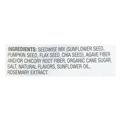 INGREDIENTS:  Seedwise Mix (Sunflower Seed, Pumpkin Seed, Flax Seed, Chia Seed), Agave Fiber and/or Chicory Root Fiber, Organic Cane Sugar, Salt, Natural Flavors, Sunflower Oil, Rosemary Extract.