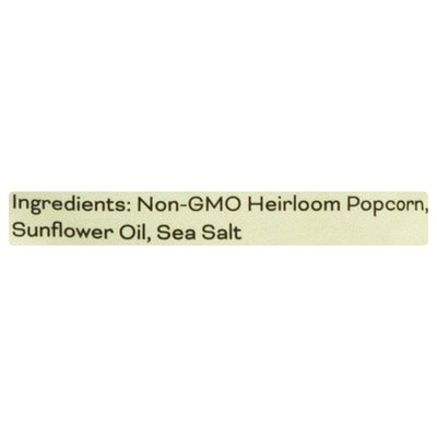 INGREDIENTS: Non-GMO Heirloom Popcorn, Sunflower Oil, Sea Salt.