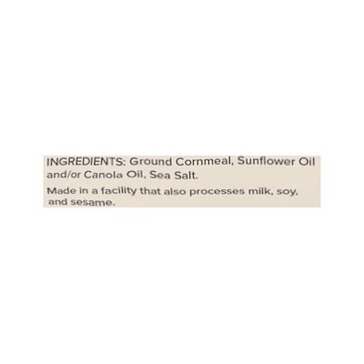 INGREDIENTS: Ground Cornmeal, Sunflower Oil and/or Canola Oil, Sea Salt.