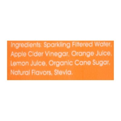 INGREDIENTS: Sparkling Filtered Water, Apple Cidar Vinegar, Orange Juice, Lemon Juice, Organic Cane Sugar, Natural Flavors Stevia.