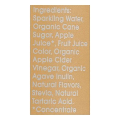 INGREDIENTS: Sparkling Water, Organic Cane Sugar, Apple Juice (Concentrate), Fruit Juice Color, Organic Apple Cider Vinegar, Organic Agave Inulin, Natural Flavors, Stevia, Natural Tartaric Acid.