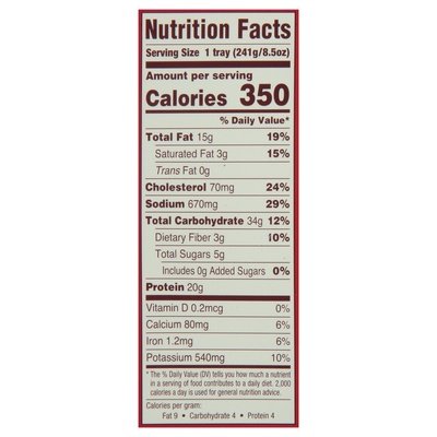 INGREDIENTS: Italian Tomatoes (Italian Tomatoes, Tomato Puree), Chicken Breast, Water, Pasta (Durum Semolina), Soybean Oil, Cracker Crumbs (Wheat Flour, Garlic Powder, Parmesan and Romano Cheese [Cow's Milk, Cultures, Salt, Enzymes], Salt, Spices, Dehydrated Parsley, Unsalted Butter [Pasteurized Cream, Natural Flavor], Natural Flavor), Mozzarella Cheese (Pasteurized Milk, Cheese Culture, Salt, Enzymes), Onion, Egg, Wheat Flour (Wheat Flour, Malted Barley Flour), Salt, Parmesan Cheese (Pasteurized Part-Skim Cow's Milk, Cheese Cultures, Salt, Enzymes), Olive Oil, Food Starch, Garlic, Spices.