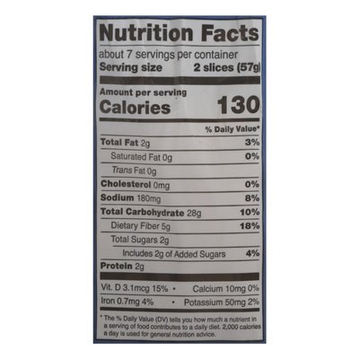 INGREDIENTS: Water, Sourdough (Rice Flour, Water), Rice Starch, Corn Starch, Rice Syrup, Modified Cellulose, Psyllium Seed Husk (Vegetable Fiber), Sunflower Oil, Pea Protein, Yeast, Millet Flour, Citrus Fiber, Rice Flour, Quinoa Flour, Salt, Guar Gum, Corn Flour.