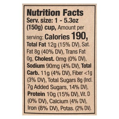 PRODUCT DETAILS: Made with real fruit. No artificial sweeteners. No artificial flavors. No preservatives. 10 g protein. 8 g sugar. On average, siggi's plant-based flavored cups have 1.9 protein per oz, vs the leading flavored yogurt alternatives' average of 0.6 g protein per oz. Certified gluten-free. See nutrition facts for sat. fat content. 3x more protein than leading yogurt alternatives. Non-Dairy. Non-GMO Project verified. nongmoproject.org. All natural. No stevia. Like us! (we certainly like you). Facebook. Twitter. Instagram. Remove label to: Read our story. Kindly recycle.