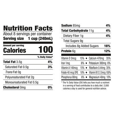 PRODUCT DETAILS: Flavored with other natural flavor. 6 g protein per serving. 6 g of complete, plant-based protein per serving. Free from: Dairy; Gluten; Carrageenan; Cholesterol; Artificial colors: artificial flavors. Vitamin D to support strong bones. 50% more calcium than dairy milk (Silk vanilla soymilk: 470 mg calcium per cup versus 309 mg calcium per cup of reduced fat dairy milk. USDA FoodData Central, 2022). Good source of protein. Non-GMO Project verified. nongmoproject.org. The original nutrition powerhouse. Est. 1977 Boulder, CO. Goodness grown. Made from whole harvested soybeans. Peak Harvest: Picked at the peak of ripeness. For an extraordinary tasting soymilk. Danone: Part of the Danone family. Love it or your money back. Visit silk.com/loveit or call 888-820-9283 for a full refund. Limit two refunds per household per year. silk.com. how2recycle.info. Certified B Corporation. Enjoy all of the Silk products in the plant-based yogurt, creamer, and milk alternative aisles. The original plant pioneer. Silk has been leading the plant-based movement from the start. We believe in the power of plants to regenerate the planet. Regenerative agriculture is essential to our planet's health, and we've started our efforts on orchards where we source our almonds. Silk is conserving natural resources to help protect our planet. Supports water restoration programs. Manufactures with renewable energy (100% of the electricity used to manufacture our products at our facilities comes from renewable sources through purchasing recs and sourcing from PPAs. Based on a life cycle assessment, silk beverages have a lower carbon footprint than us conventional dairy milk on a gallon-for-gallon basis). Makes products that emit less carbon (100% of the electricity used to manufacture our products at our facilities comes from renewable sources through purchasing RECs and sourcing from PPAs. Based on a life cycle assessment, silk beverages have a lower carbon footprint than us conventional dairy milk on a gallon-for-gallon basis) It's not just soymilk. It's milk of the land. Follow our progress at silk.com. FSC: Mix - Board.