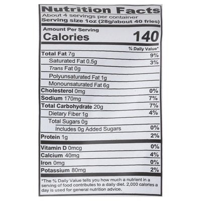 INGREDIENTS: Our Ingredients: Potato Starch, Sweet Potato Flour, Sunflower and/or Safflower Oil, Potato Flakes, Sea Salt, Annatto.