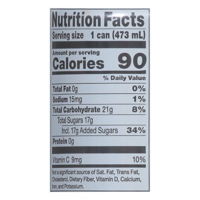 INGREDIENTS: Filtered Water, Cane Sugar (Organic) (Fair Trade), Natural Flavors (Pomegranate, Blueberry & Other), Acai Juice (Organic), Lemon Juice (Organic), and Green Tea (Organic) (Fair Trade).