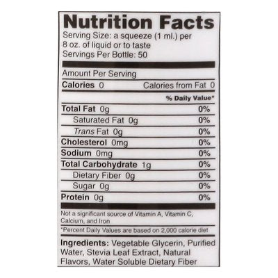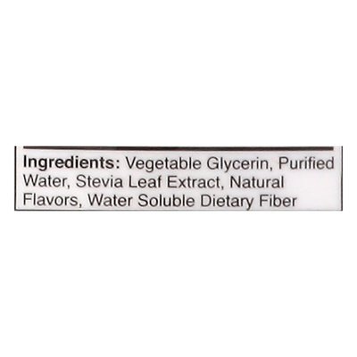 INGREDIENTS: Vegetable Glycerin, Purified Water, Stevia Leaf Extract, Natural Extract, Water Soluble Dietary Fiber.