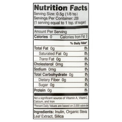 INGREDIENTS: Inulin, Organic Stevia Leaf Extract, Silica.