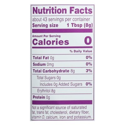 PRODUCT DETAILS: Gluten free. Zero calories. Non-glycemic. Keto friendly. Zero net carbs: The ingredients in Swerve do not effect blood sugar, so the carbohydrates it contains are considered non-impact. Net carb =total carb - fiber - erythritol. Non GMO. Certified by NSF. nsfnongmo.org. The ultimate sugar replacement. Erythritol and prebiotic oligosaccharides blend. Natural. Tastes, bakes and measures like sugar. Swerve is a delicious, carb-conscious natural sweetener or digestive discomfort of other sweeteners. It's perfect for baking, coking and sweetening your favorite foods and beverages. Swerve is made form ingredients found in select fruits and starchy root vegetables, and contains no artificial ingredients, preservatives or flavors. Join the Swervolution! Measures like sugars. Tastes like sugar. Diabetes friendly. Bakes like sugar. Tummy friendly. Pet safe. Born and raised in New Orleans. You've been swerved. SwerveSweet.com.