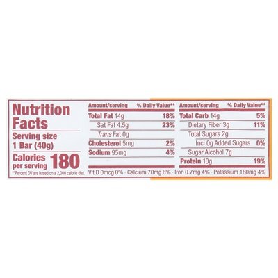 PRODUCT DETAILS: Naturally flavored. 10 g protein. 2 g sugar. Gluten free. gfco.org. See nutrition facts for fat and saturated fat contact. 4 g net carbs (Net carbs = total carbs minus fiber and sugar alcohols). Not a low calorie food. Keto certified. This product is keto certified.com. No artificial sweeteners (does not contain sucralose, saccharin, aspartame, acesulfame potassium, neotame, or advantame). www.thinkproducts.com. Think promise (Please visit thinkproducts.com to learn more about our commitment to quality ingredients).