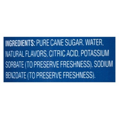 INGREDIENTS: Pure Cane Sugar, Water, Natural Flavors, Citric Acid, Potassium Sorbate (to Preserve Freshness), Sodium Benzoate (to Preserve Freshness).