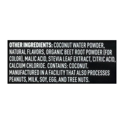 INGREDIENTS: Other Ingredients: Coconut Water Powder, Natural Flavors, Organic Beet Root Powder (for Color), Malic Acid, Stevia Leaf Extract, Citric Acid, Calcium Chloride.