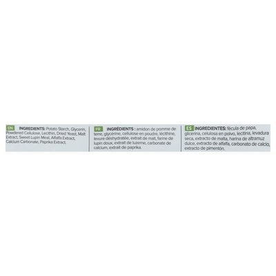 INGREDIENTS: Potato Starch, Glycerin, Powdered Cellulose, Lecithin, Dried Yeast, Malt Extract, Sweet Lupin Meal, Alfalfa Extract, Calcium Carbonate, Paprika Extract.