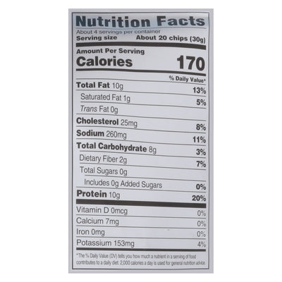 PRODUCT DETAILS: Crispy chips crafted from antibiotic-free chicken breast and tapioca starch. 10g protein per serving. Certified gluten free. Good source of protein. Chicken raised without antibiotics. Wilde is the first chip bold enough to create a delicious chip crafted from 100% all natural (No artificial ingredients; minimally processed) chicken breast. Our sea salt & vinegar chips are the perfect balance between crispy chicken and a vinegary snap. Prepare your tastebuds for a spanking. Savor freely. Crunch wildely. hicken used contains no antibiotics or added hormones (There are no hormones approved for use in production of poultry). Chicken used 100% Natural (No artificial ingredients: Minimally processed) raised without antibiotics no added hormones (There are no hormones approved for use in the production of poultry). Packet enclosed to keep fresh; it is harmless and non-toxic but do not eat packet. Inspected for wholesomeness by U.S. Department of Agriculture. wildebrands.com. Facebook. Twitter. Instagram. (at)wildechips. Want to learn more. Made in USA.