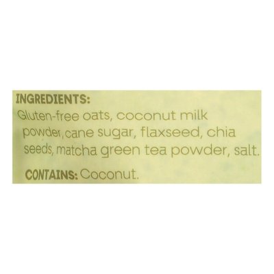 INGREDIENTS: Gluten-Free Oats, Coconut Milk Powder Cane Sugar, Flaxseed, Chia Seeds, Matcha Green Tea Powder, Salt.